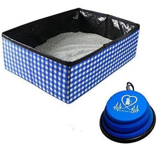 Foldable Cat Litter Box - Bonus Collapsible Bowl