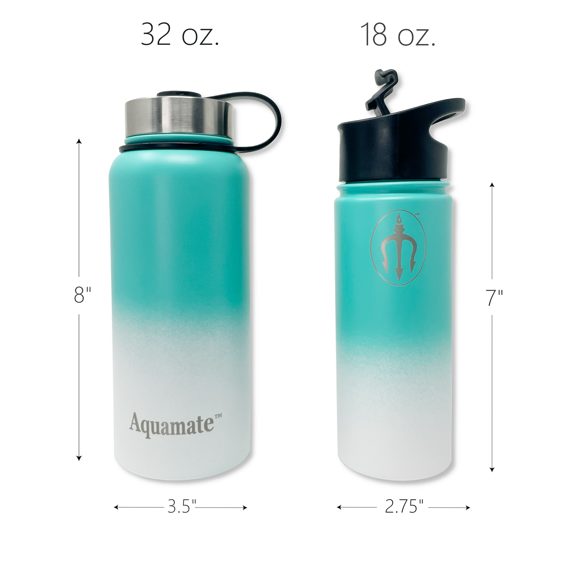 Aquamate Sports Water Bottle Gift Pack (32oz and 18oz) Insulated Stainless Steel , 4 Lids and Carrying Straps