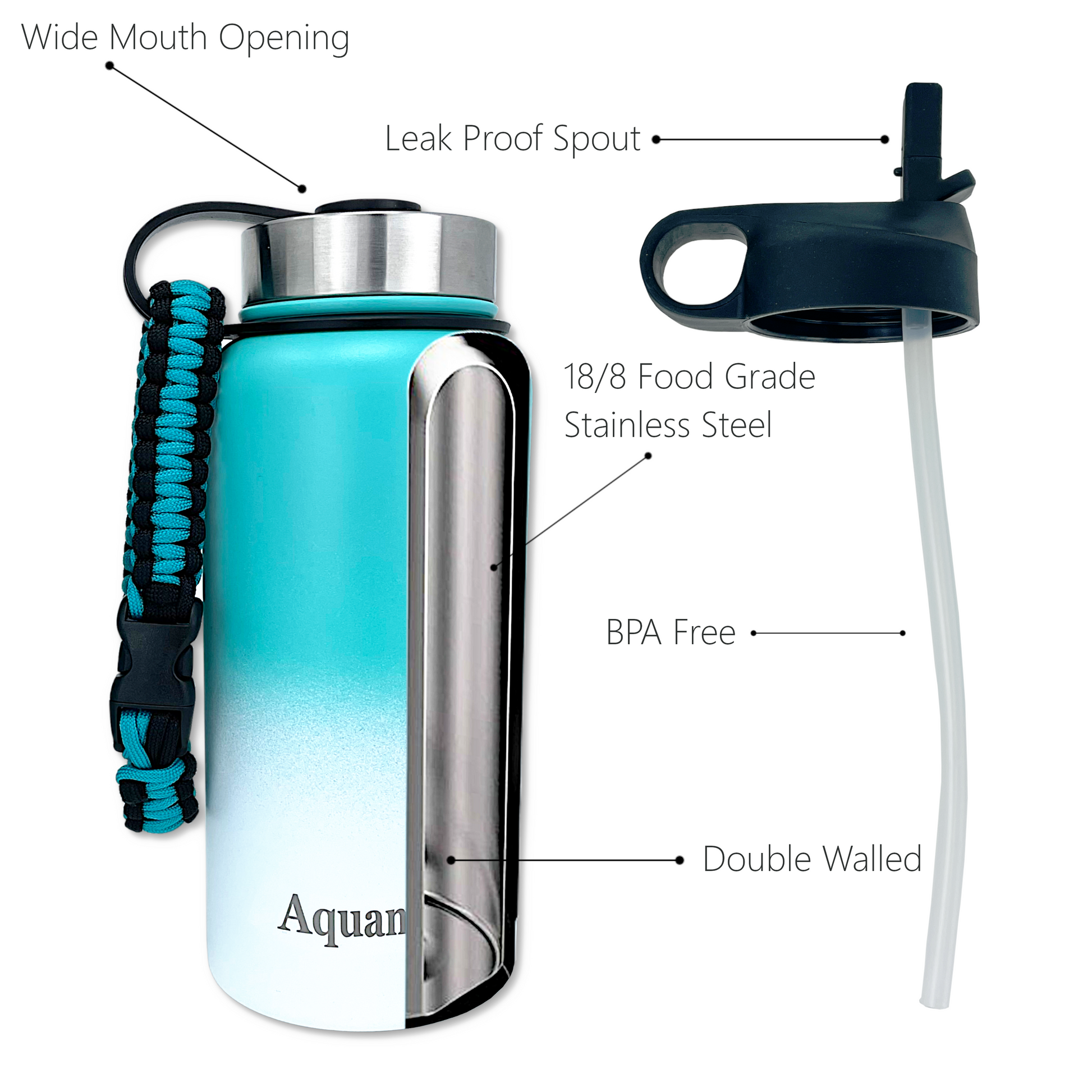 - Comes with a quality, removable paracord carry strap. Textured exterior provides a non-slip grip. Insulated interior means a sweat free exterior. The 18oz bottle fits most standard car, truck, SUV or treadmill cupholders