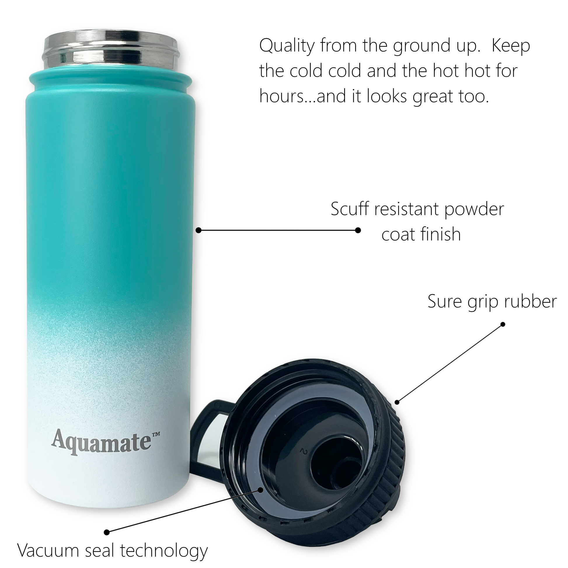 - Not only do these bottles look great, the quality and design is second to none. Double walled insulated stainless steel interior keeps the cold, cold and the hot, hot. BPA free and no flavor transfer, oxidation or rust. Wide mouth (great for adding ice) and 4 interchangeable lids made from ABS plastic with soft rubber finger grips for easy opening and a pleasant experience regardless of your drinking needs or style.