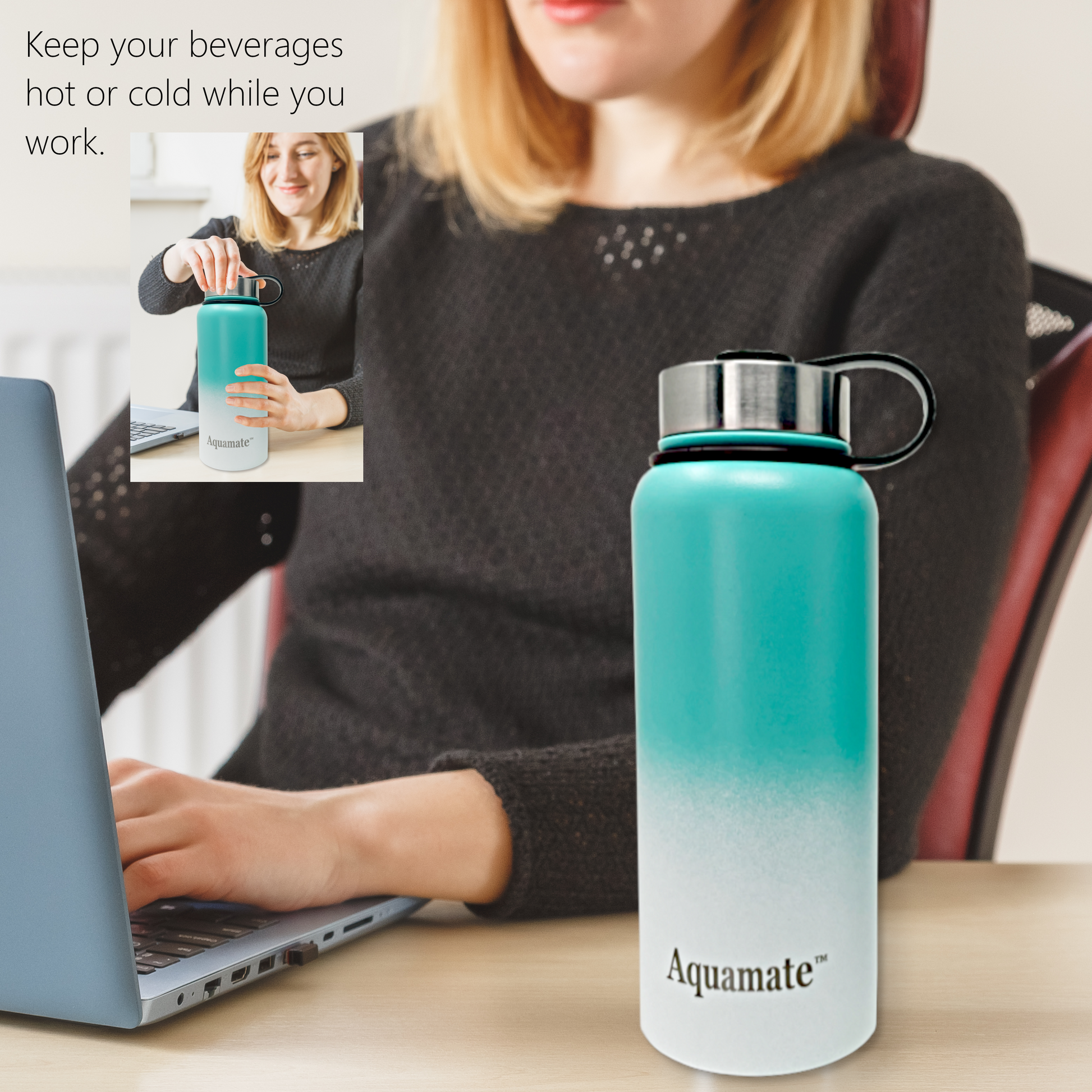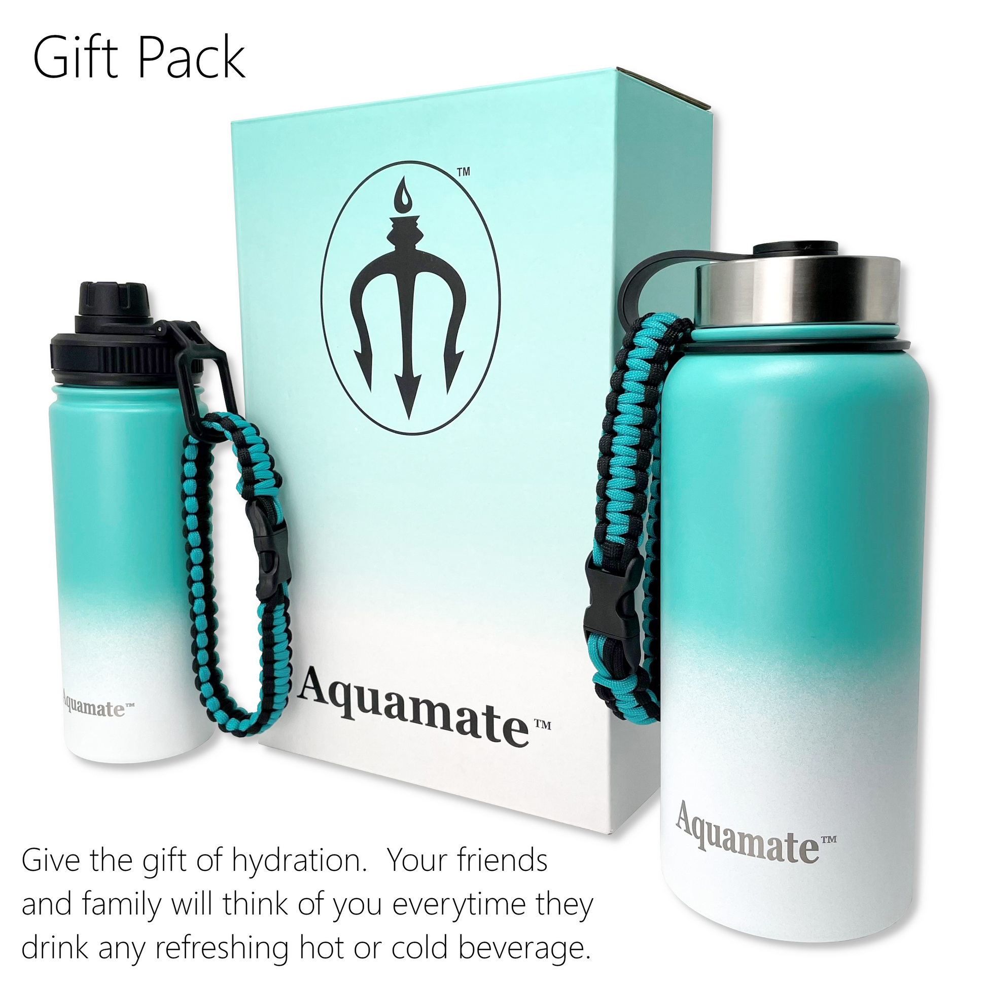 - Hydrate in style with the all new Aquamate water bottle Combo pack. Two eye catching water bottles with 4 interchangeable lids make this a versatile and fun way to meet your recommended daily water intake.