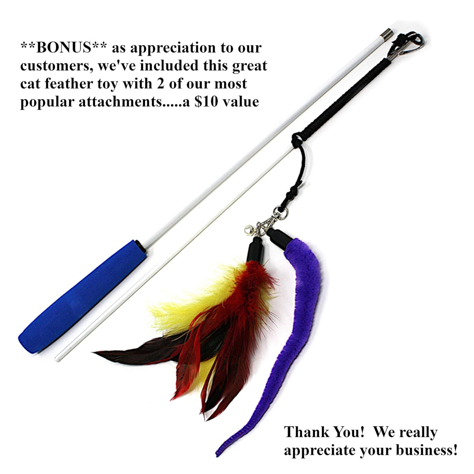 * BONUS - As a thank you to our customers we included our most popular cat feather teaser toy with 2 awesome attachments! Thank you for considering our product, we really appreciate your business.